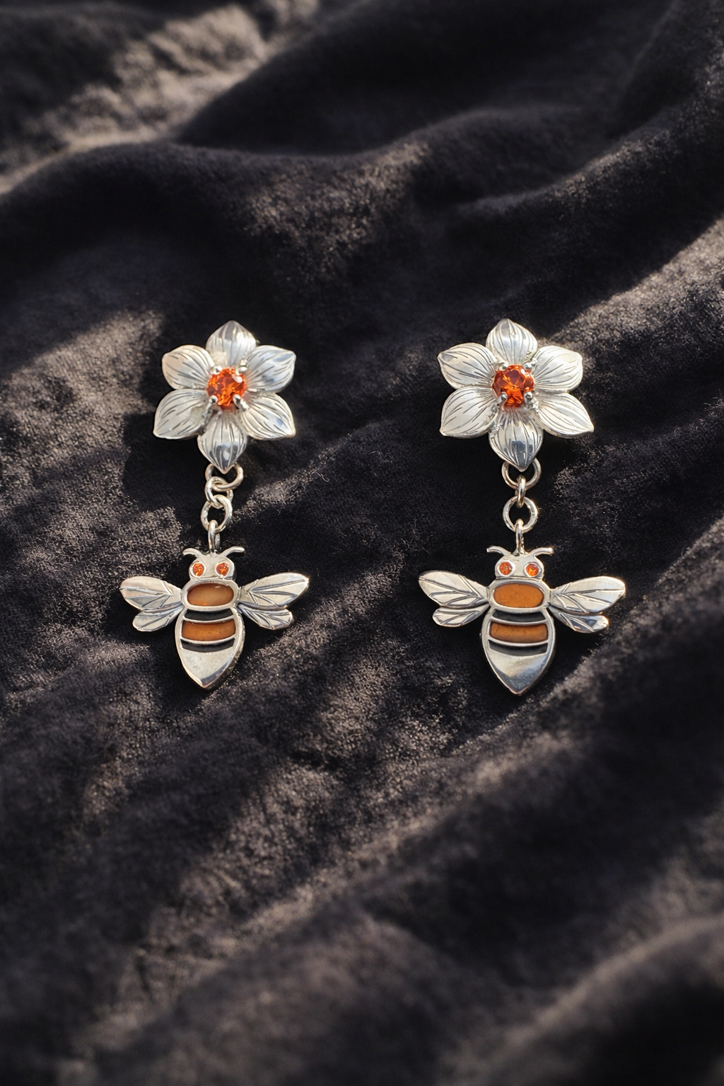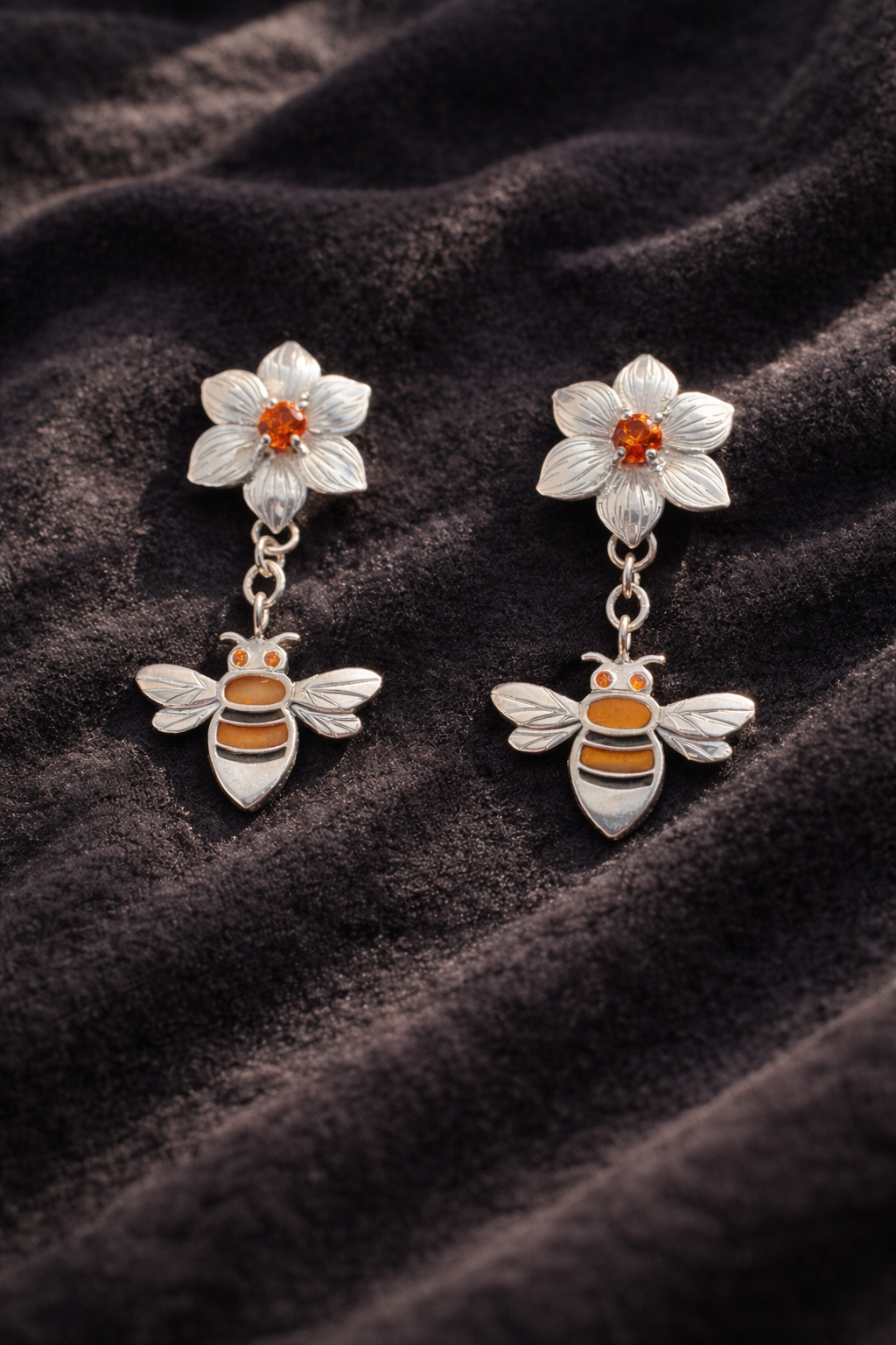 Bee and flower earrings