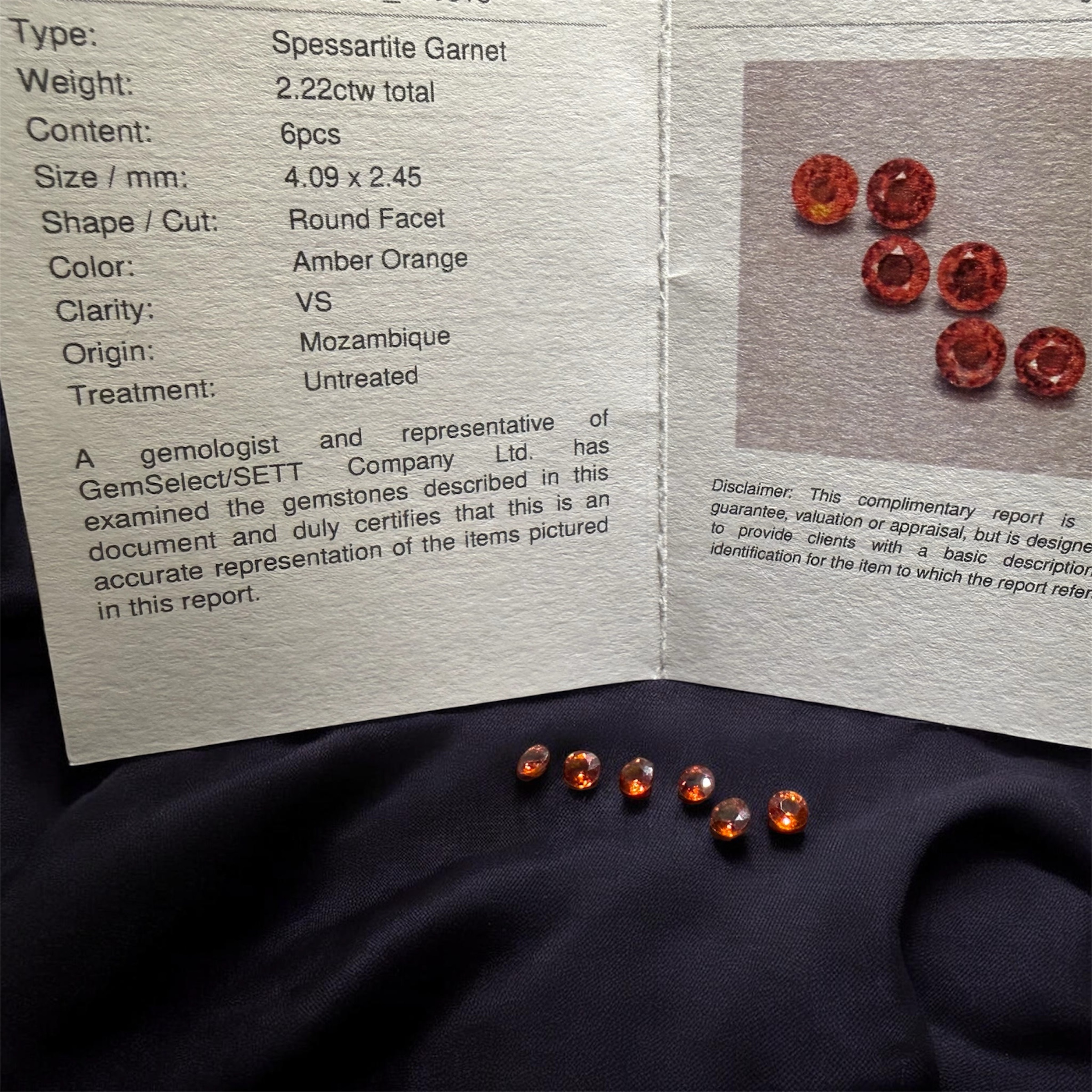 Spessartine garnets have a deeper, richer orange tone, while cubic zirconia appears brighter and more vivid.