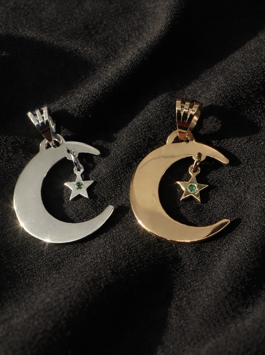 Handmade cresent and star made in 925 sterling silver with a green zirconia stone set into the star💫